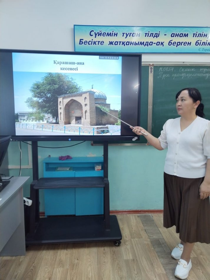 Шымкент қаласы білім басқармасына қарасты А. Макаренко атындағы N 41 мектеп-лицейінде қасиетті тарихи киелі мекендерді оқушының бойына жеткізу мақсатында мектебімізде 6 “Ә” сынып жетекшісі Ердесова Гүлжаухар “Киелі мекен" тақырыбында ашық сабақ өткізді.