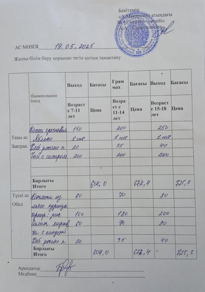 2025 жылдың 11 желтоқсандағы ас мәзірі