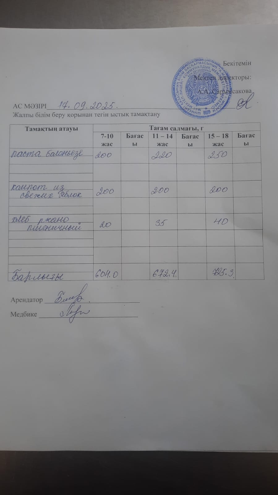 » 2025 жылғы 17 қыркүйектің ас мәзірі