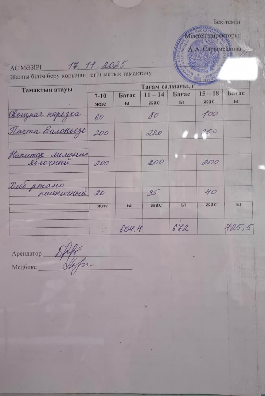 » 2025 жылдың 17 қарашадағы ас мәзірі