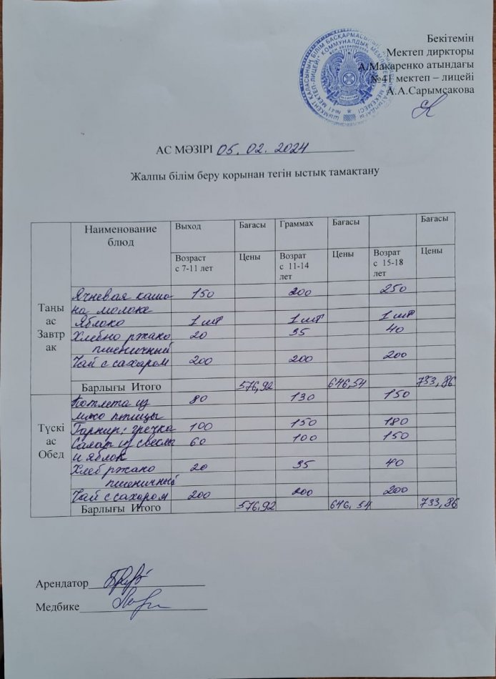 2024 жылғы 04 қыркүйектің ас мәзірі